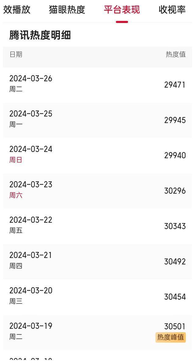 另一部是后上映的《与凤行》,上线第2天腾讯视频热度就破30000,相连破30000的天数达5天。