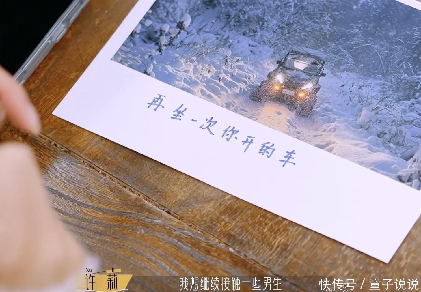 这关于她来说选拔果真很难,因为还莫得。一个特定的对象写,示意归正有东谈主选就很傲气了。       许莉选的形态是:森林越野,写的骨子是:再坐一次你开的车。 她现在坐过于敬阳卢嘉俊王震的车,其实如故有点留神念念的,就看一看有莫得东谈主反选我方。       男嘉宾这边卢嘉俊拿着马拉雪橇的卡片,猜应该是沈正的,他示意他选拔这张。